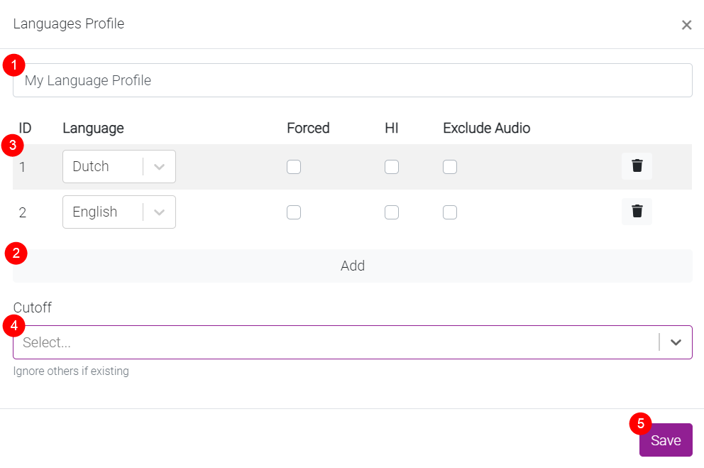 4. Optional select the cutoff where you want Bazarr to stop downloading other languages.