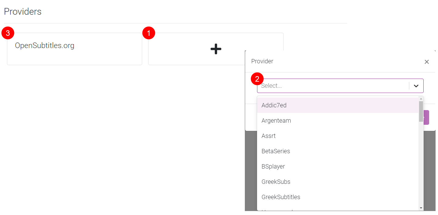Here we're going to select which subtitle providers you want to use.