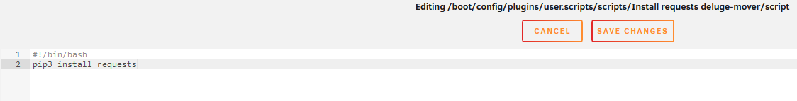 A popup will appear asking you to name the script. For this example, we're going to use Install requests (deluge-mover) and then click on OK.