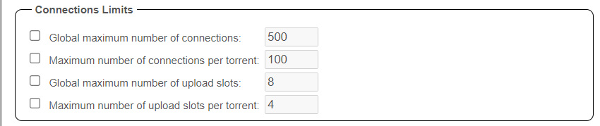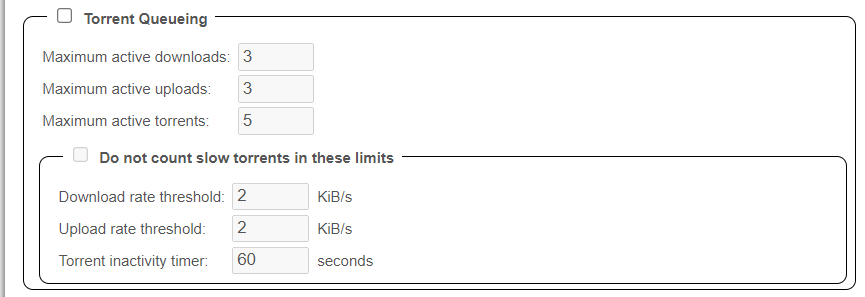 These options allow you to control the number of active torrents being downloaded and uploaded.
