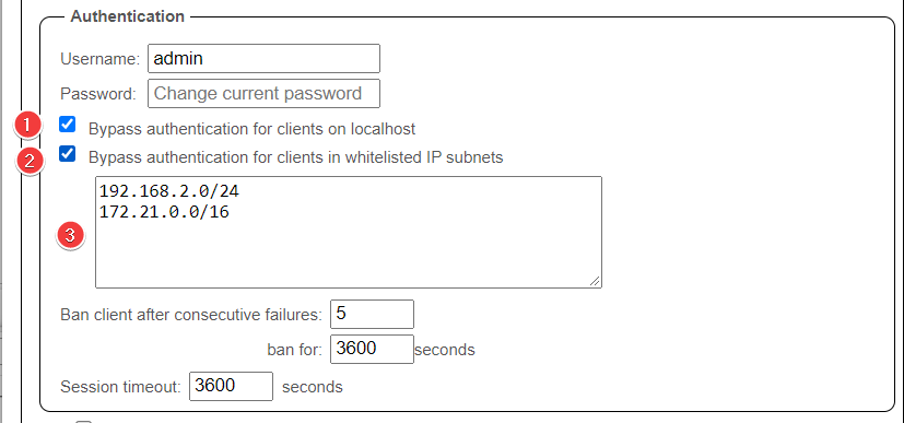 whitelist. - Add all IP subnets that you want to bypass authentication.