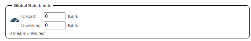 Here you can set your global rate limits, meaning your maximum download/upload speed used by qBittorrent. (For all torrents)
