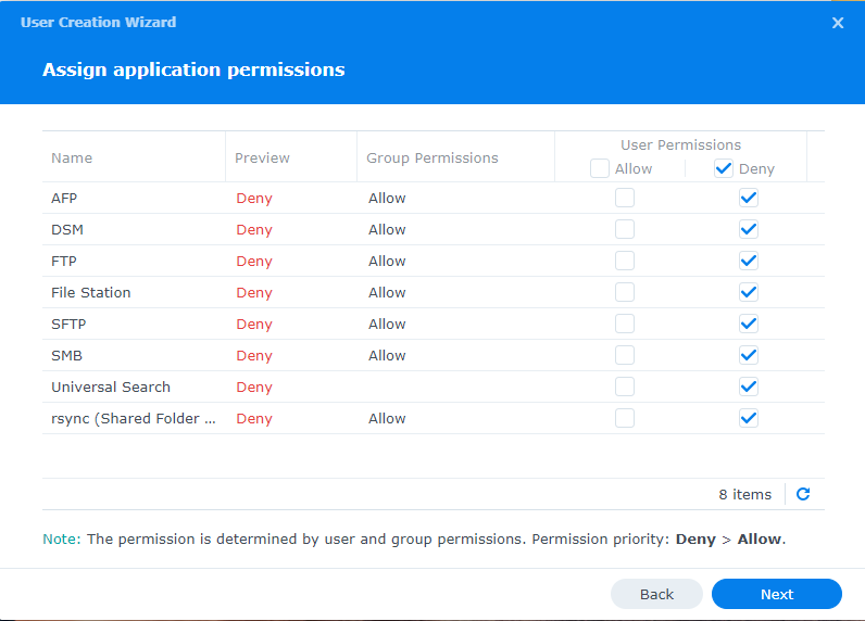 In this screen, you will be able to select which application this user will have access to. Check Deny