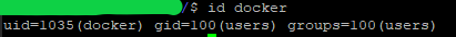 For the Docker container to access the shares on Synology, we need to know the user ID (PUID) and group ID (PGID) from the docker